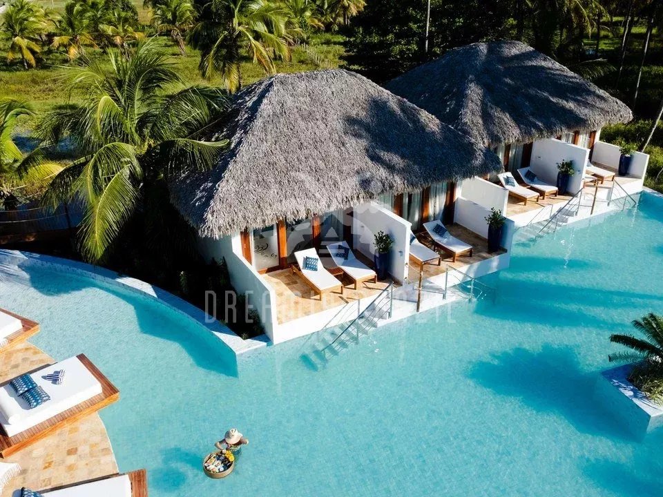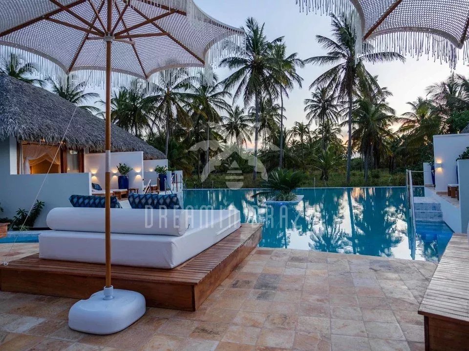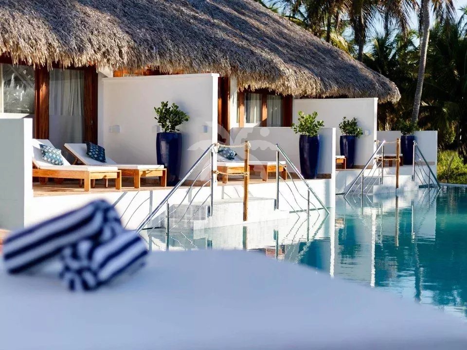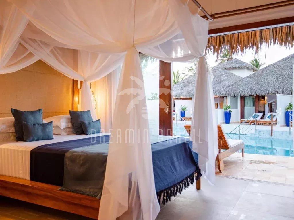 The hotel boasts eight elegant suites, each with a private terrace overlooking the pool. The common areas are designed for relaxation and well-being: an infinity pool surrounded by tropical gardens, a restaurant offering refined regional cuisine, a lounge bar and a beach tennis court.